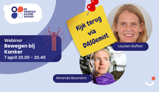 Is bewegen tijdens de kankerbehandeling zinvol? Zeker! Maar hoe lang en hoe intensief dan? Laurien en Miranda vertellen je deze avond alles over de voordelen van lichamelijke inspanning als onderdeel van de CRC-behandeling.